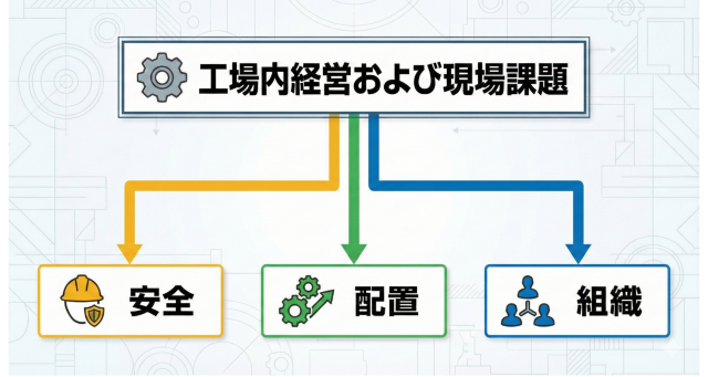 工場内経営及び現場課題を「安全」「配置」「組織」の面から対応します